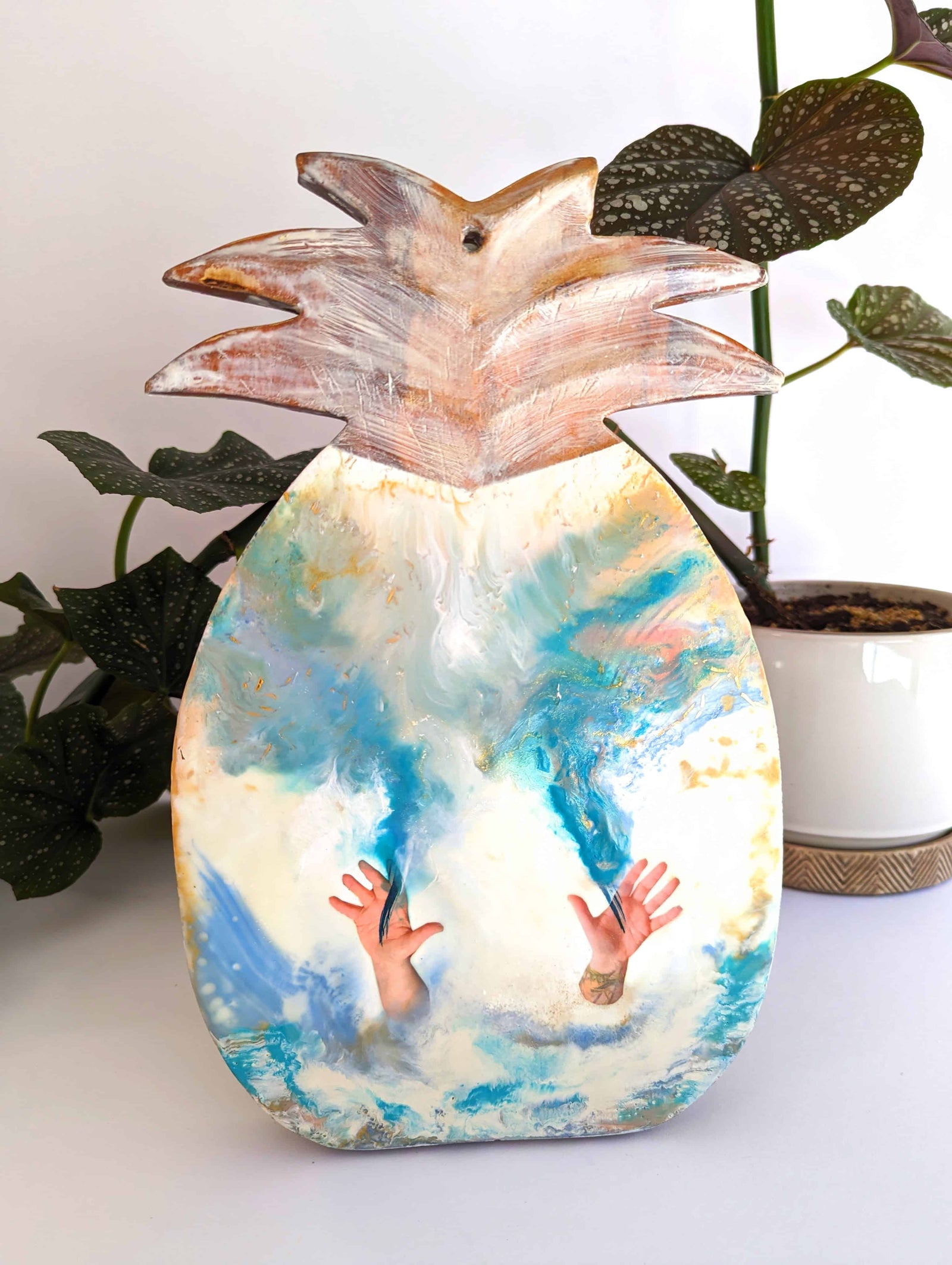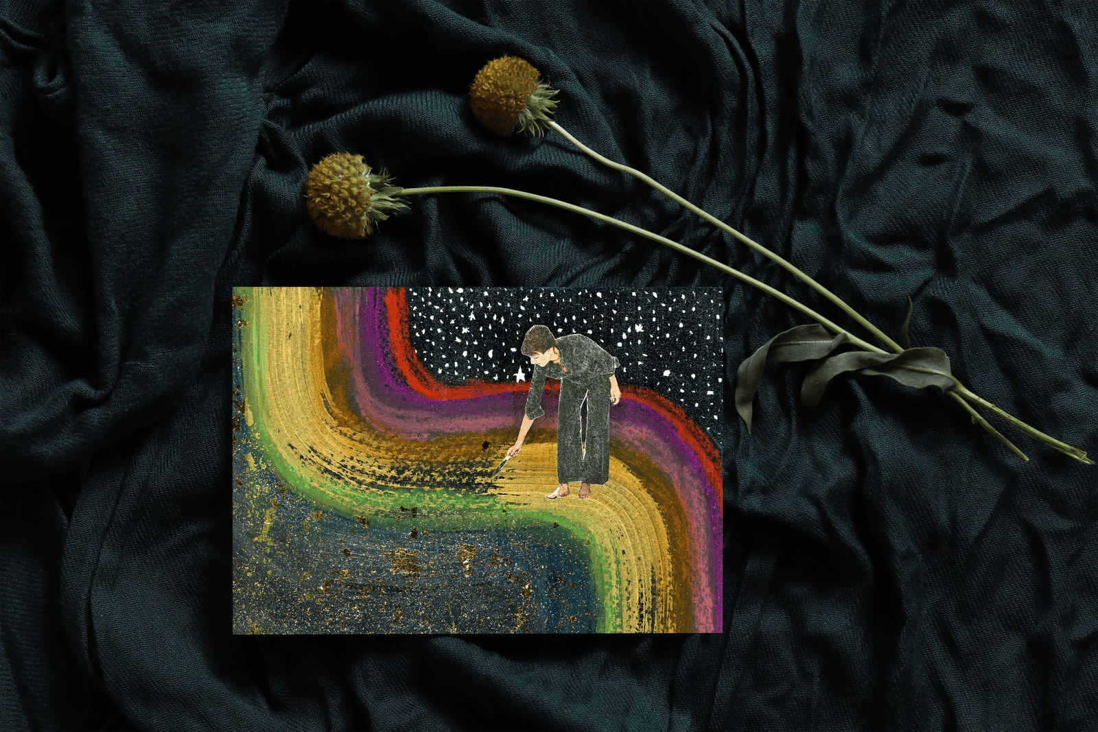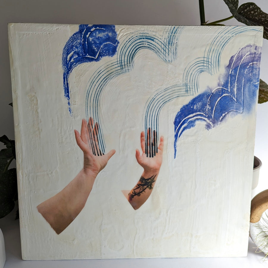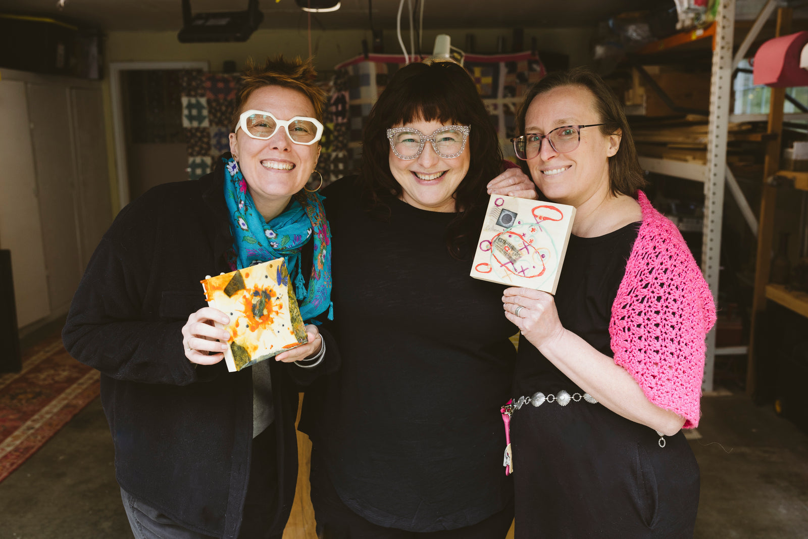 Betsy Schairer is a mixed media teaching artist specializing in encaustic collage. She is known for her works exploring magic, death, grief, and using creativity to rebuild life anew. She lives and creates in Poulsbo, Washington.