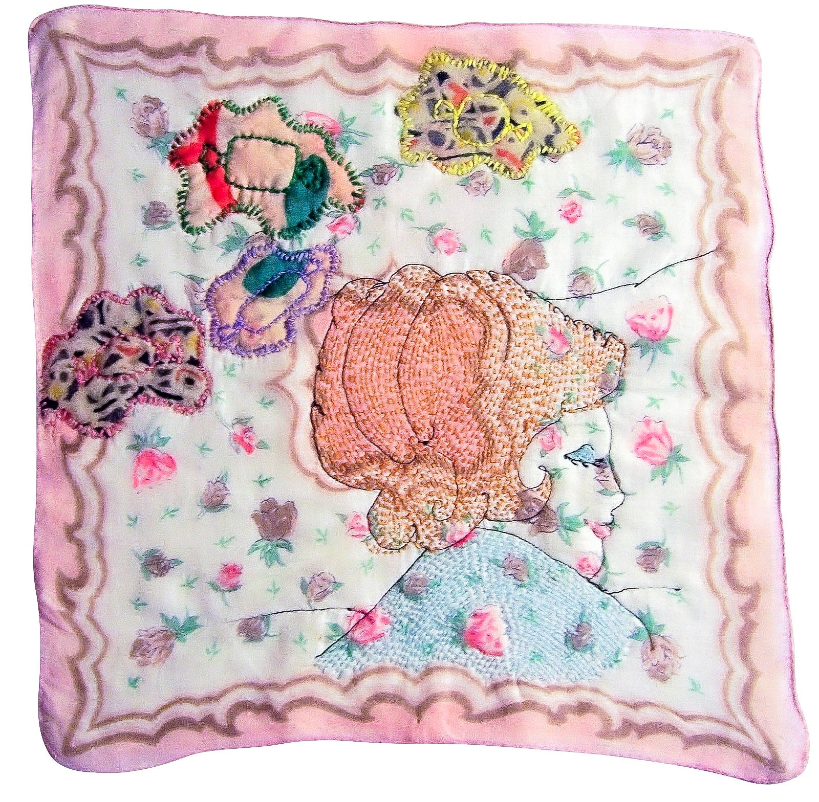 'Sweet Dreams' 2009 Embroidery thread, silk scrap vintage handkerchief