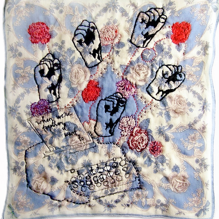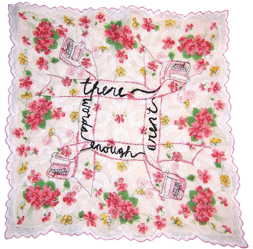 'There Aren't Enough Words' 2008 Embroidery on vintage handkerchief