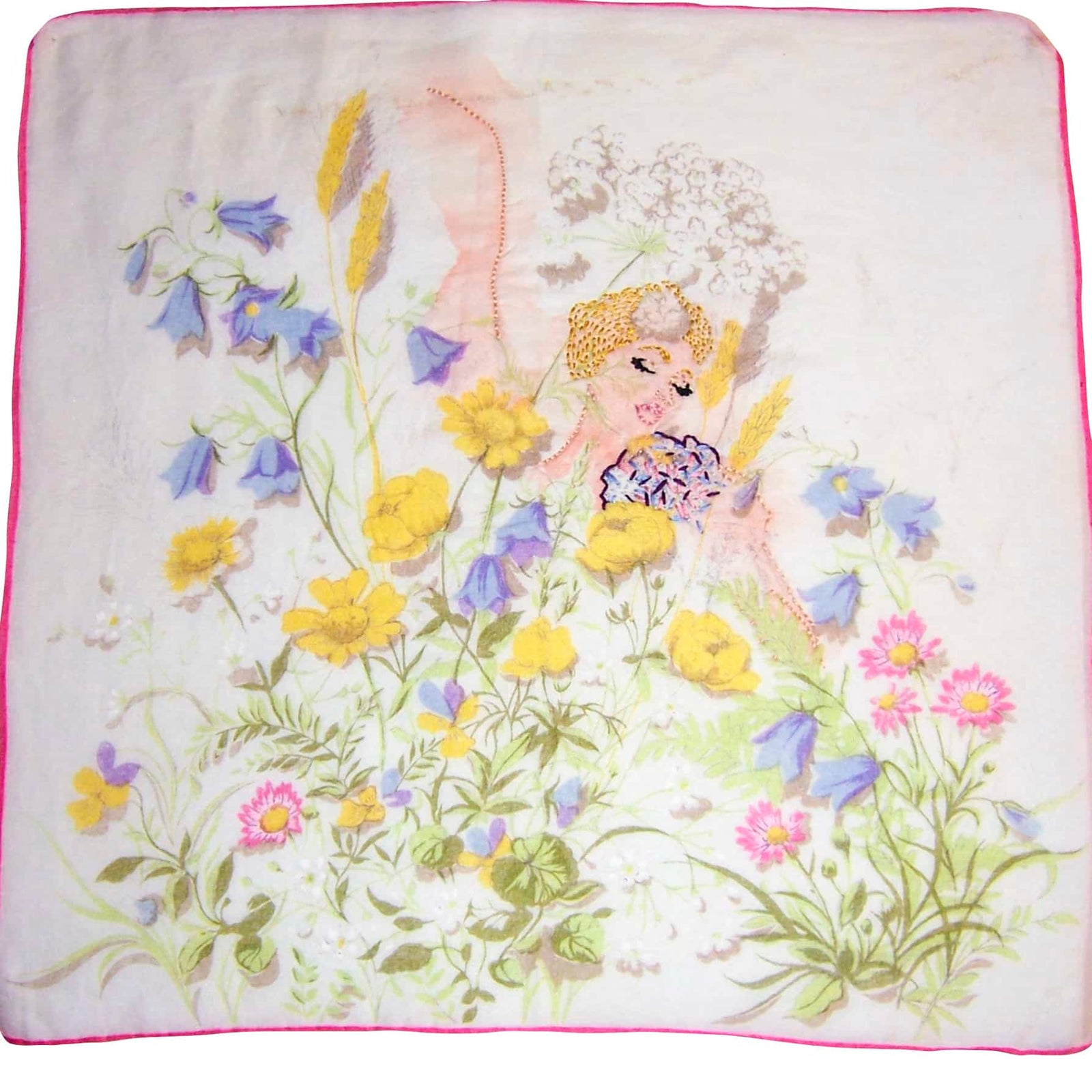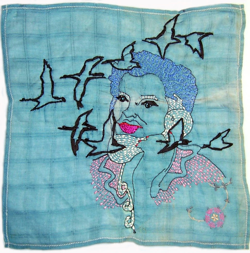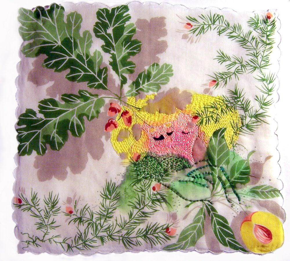'Flower Bath' 2009 Embroidery & dye on vintage handkerchief