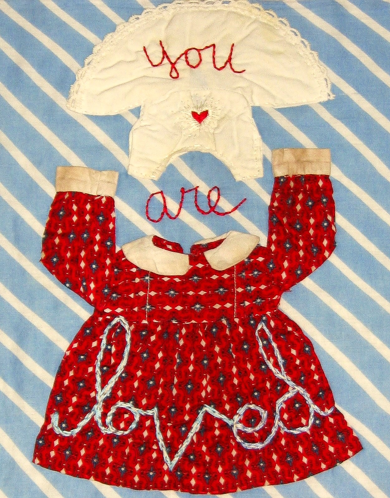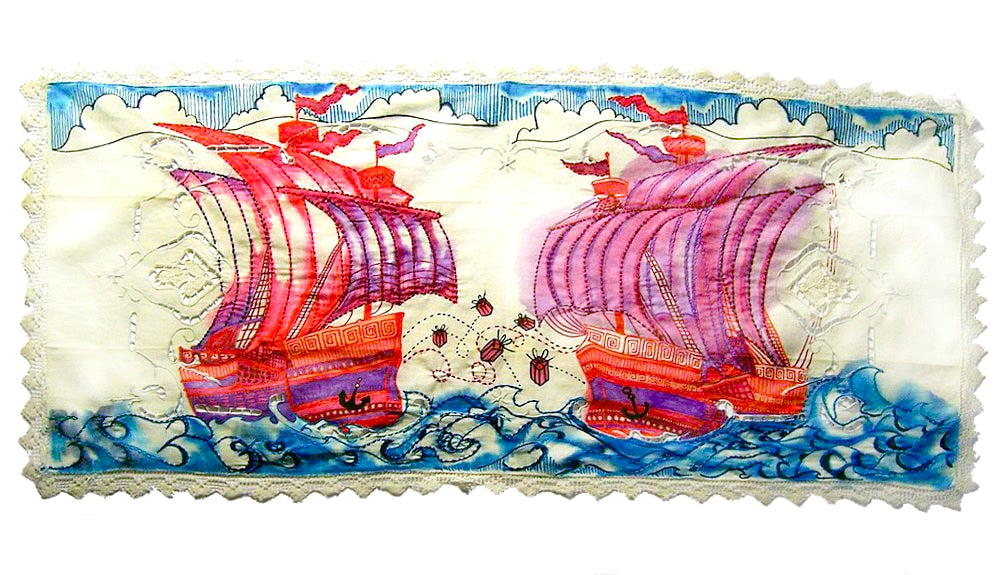 'Let's not Fight' 2010 Dye and embroidery on vintage cloth