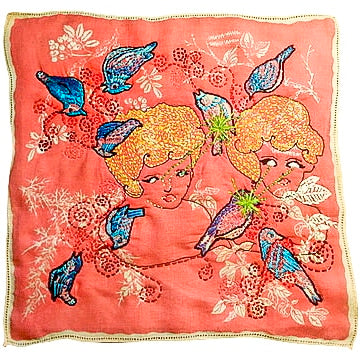 'Lazer Eyed Girls' 2006 Embroidery on vintage handkerchief