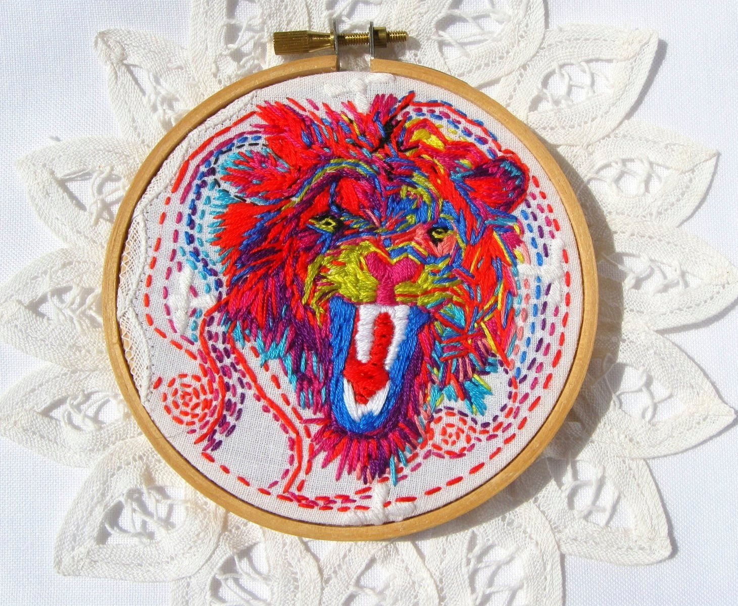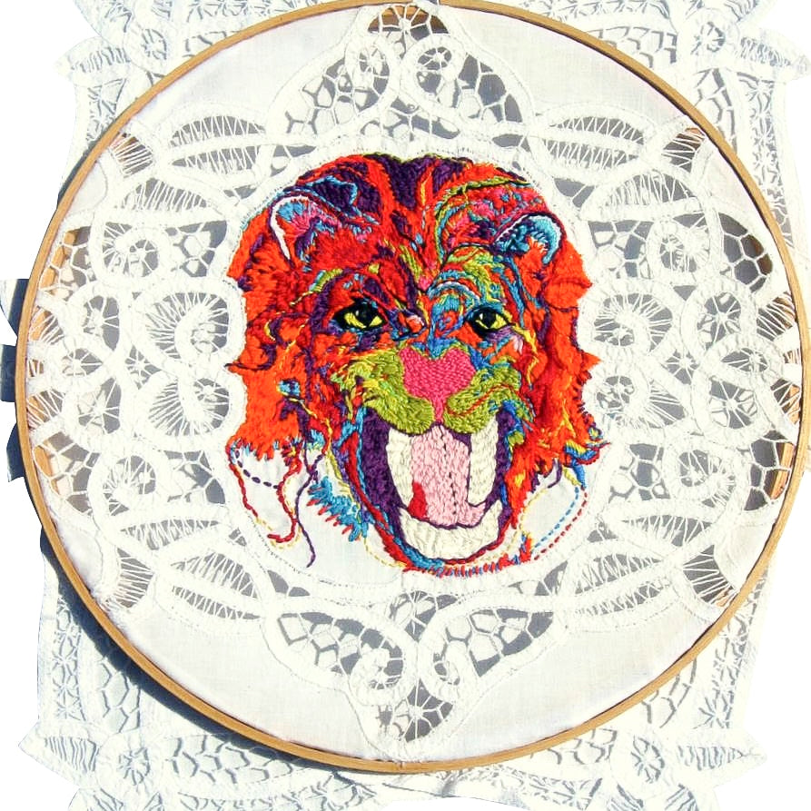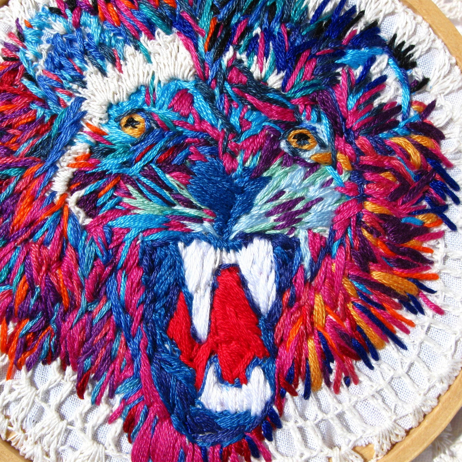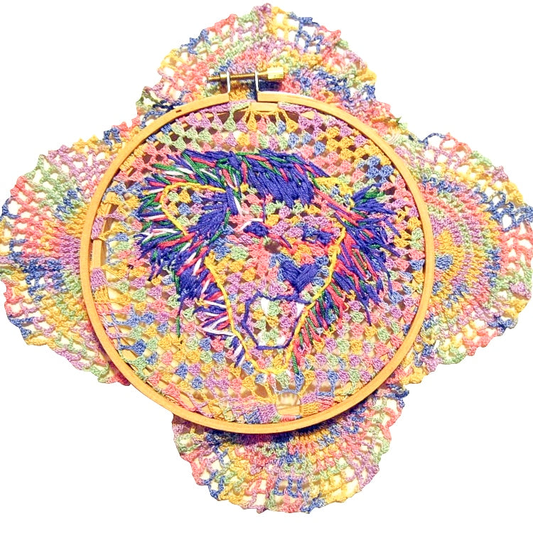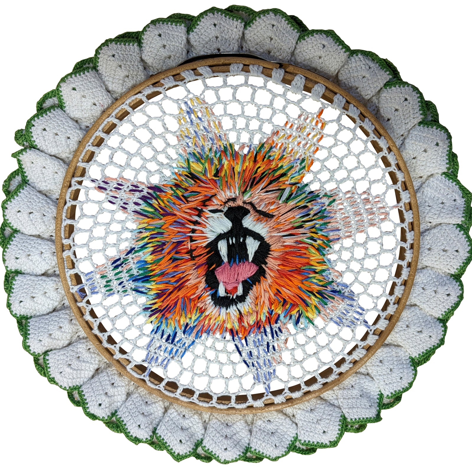 'Doily Lion' 2022 Thread, hoop, vintage doily