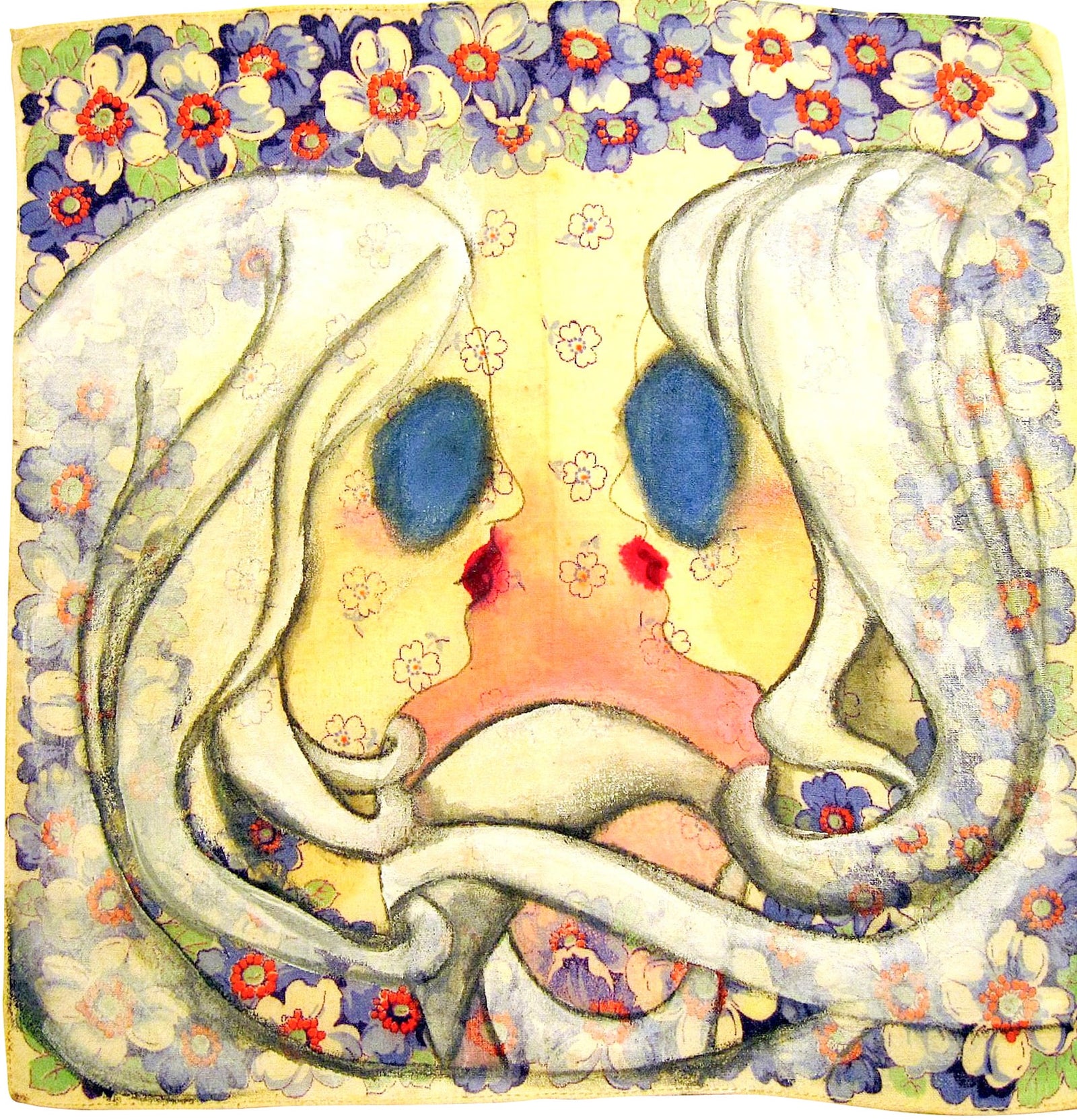 "Sisters" 2011 Acrylic and graphite on vintage handkerchief
