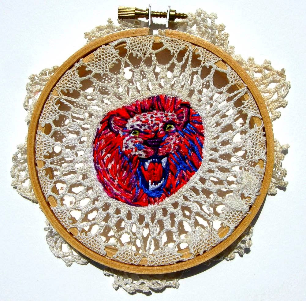 'Doily Lion' 2009 Thread, hoop, vintage doily