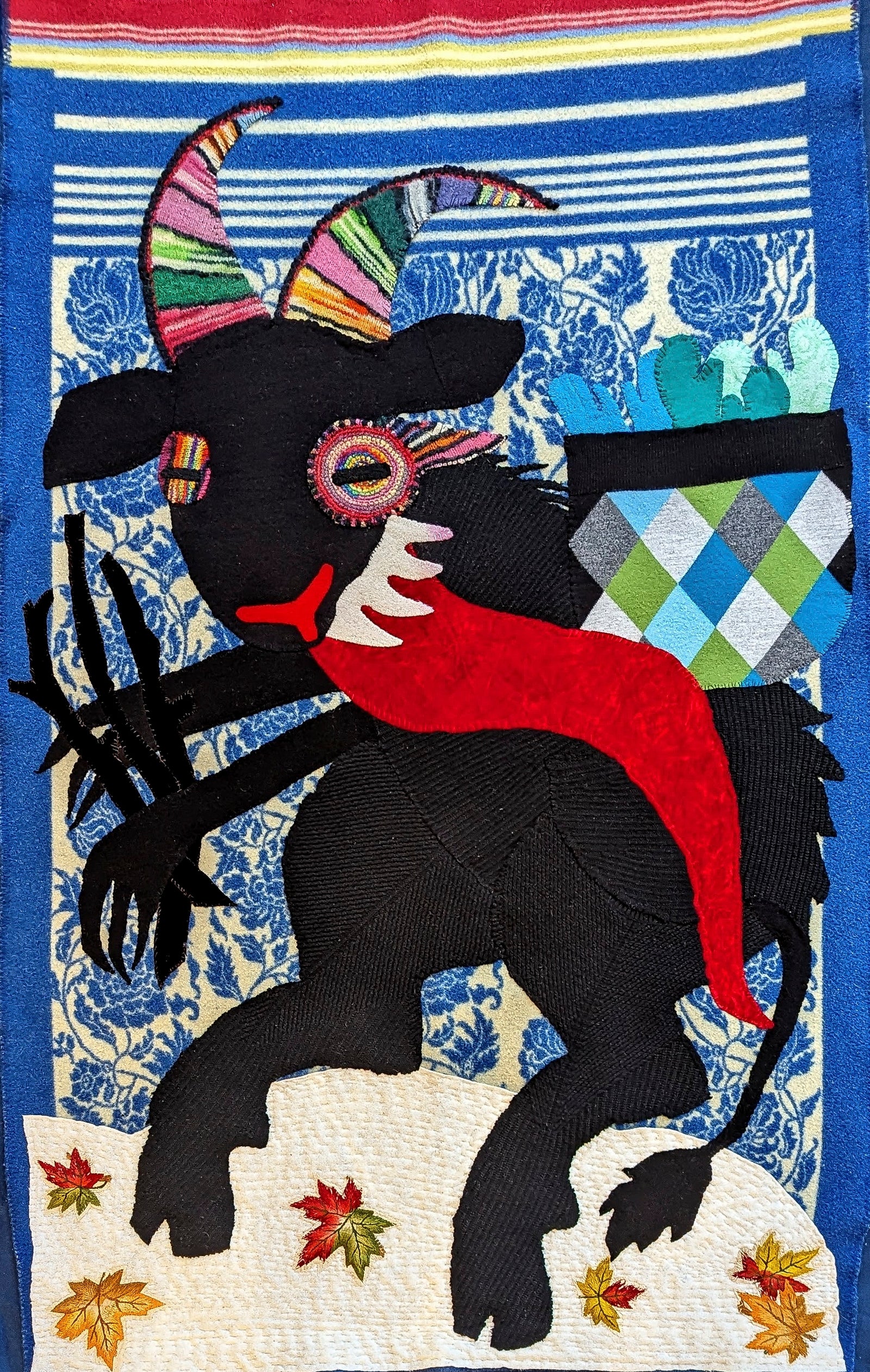 'Krampus' 2023 Wool and velvet fabric collage with hand embroidery