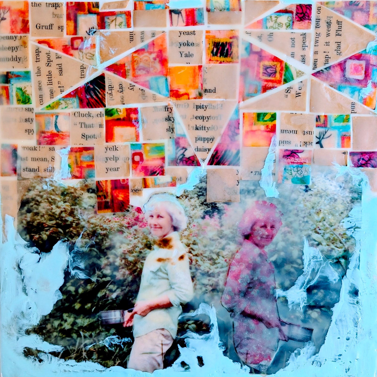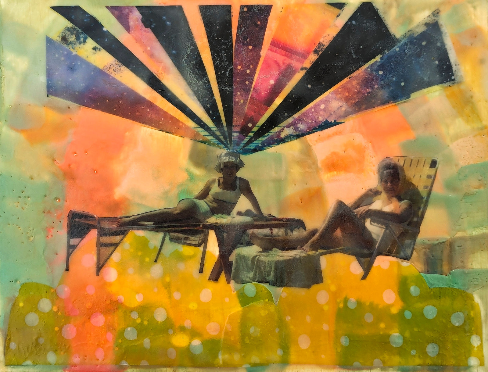 'Mom & Grandma Ann Laying Out' 2024 Encaustic collage on wood