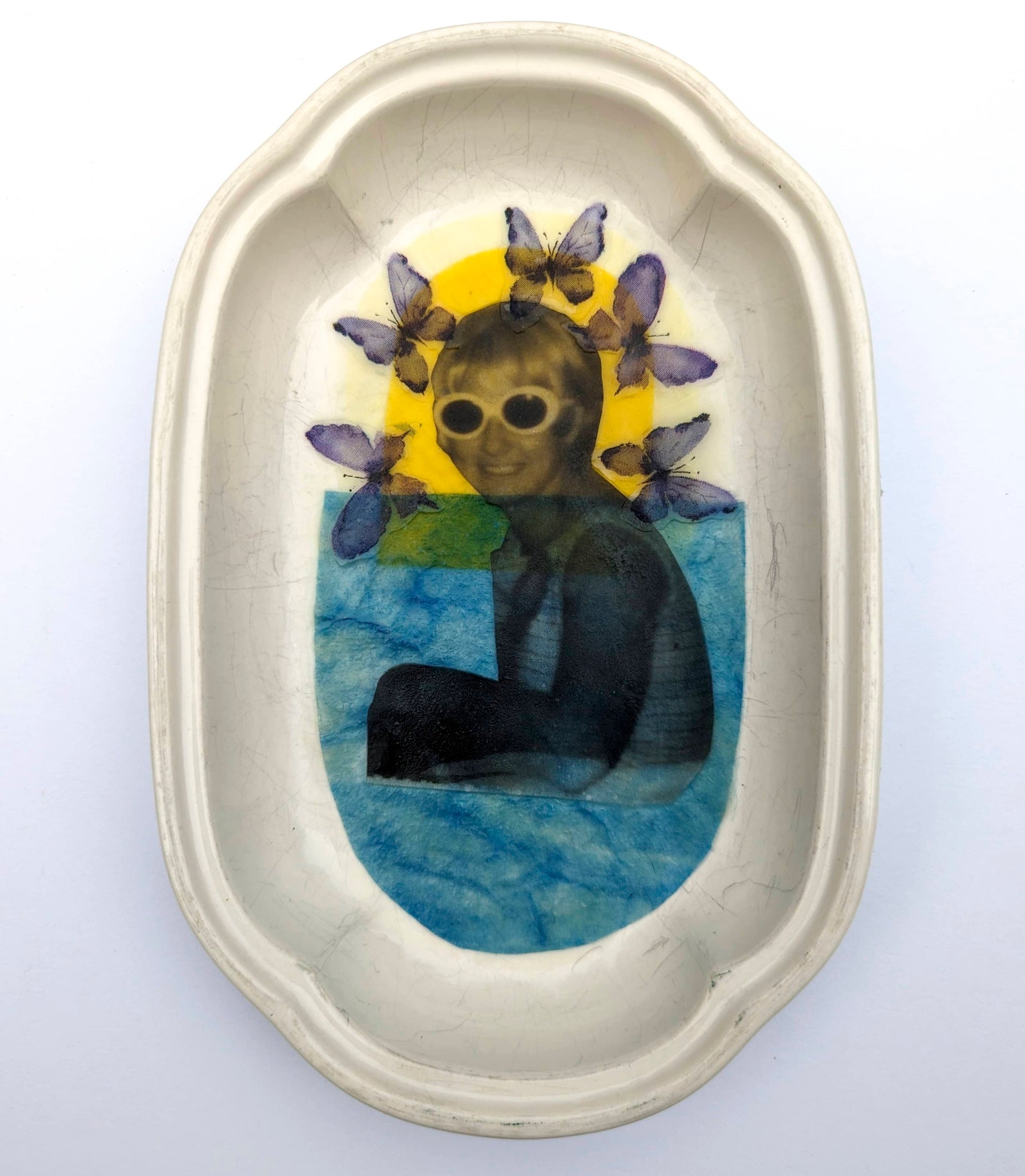 'I Wish I Knew You' 2024 Encaustic collage on ceramic dish