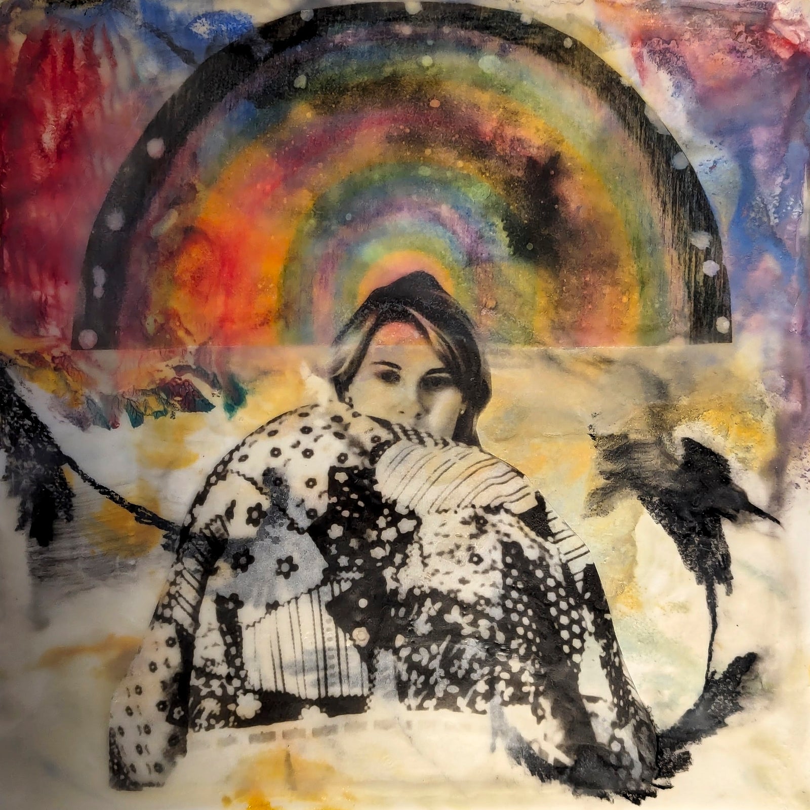'Mom Wrapped in a Quilt' 2024 Encaustic collage on paper
