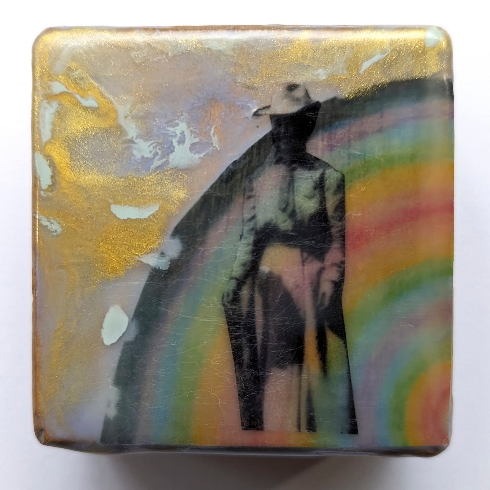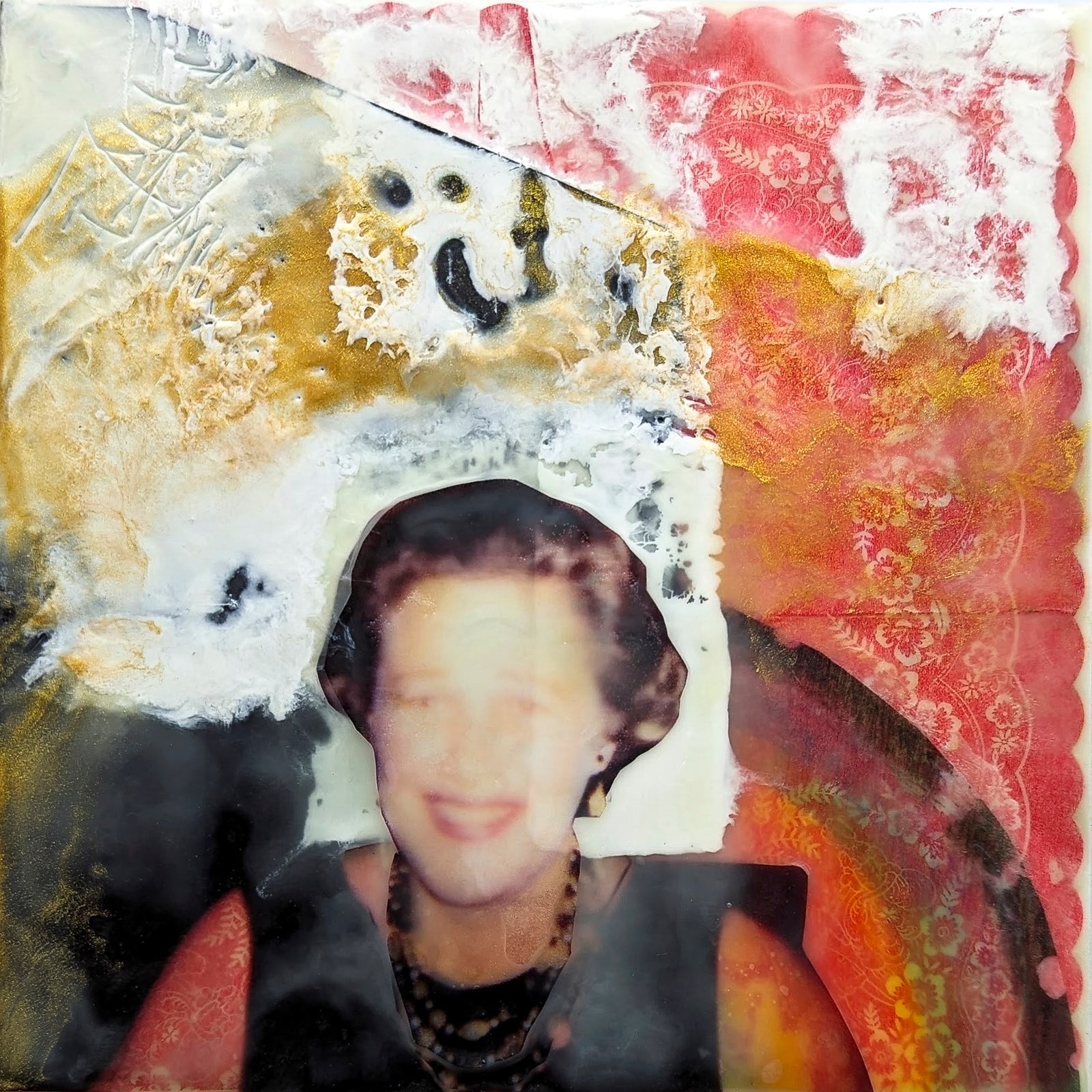 'Grandma Betty's Gift' 2024 Encaustic collage on masonite