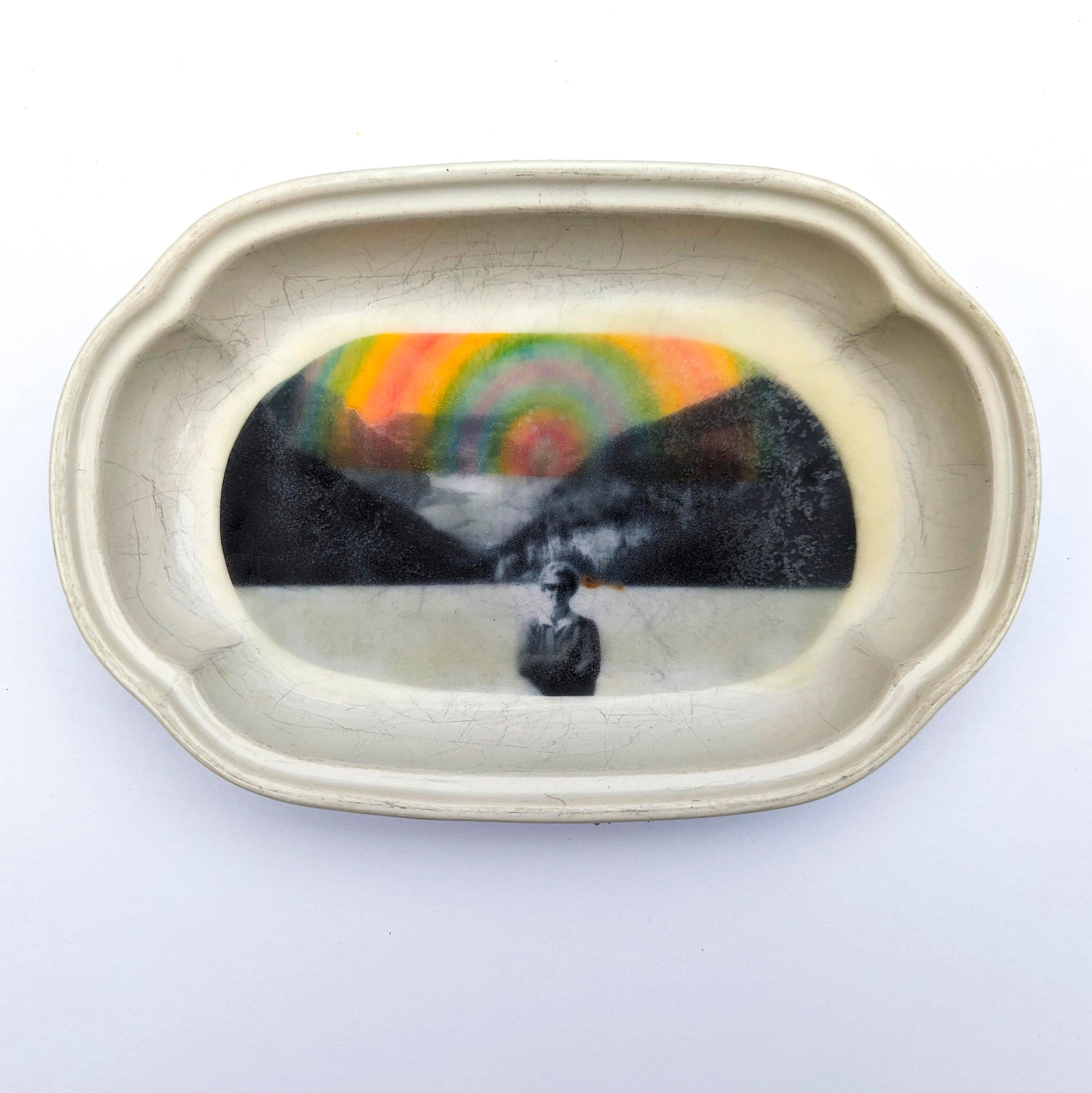 'Grandma Betty at the Mountains' 2024 Encaustic collage on ceramic dish