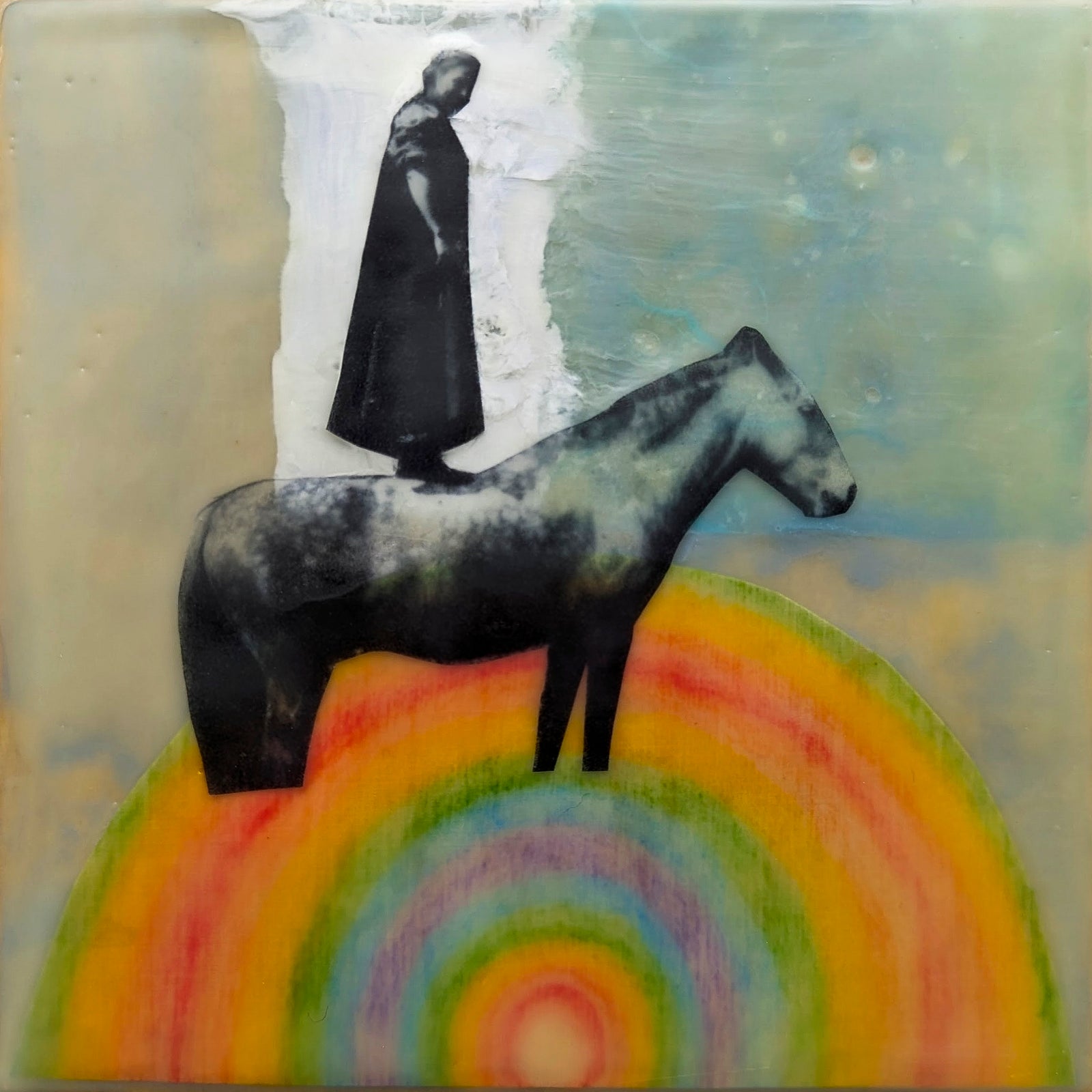 'Great Aunt Lena's Horse' 2024 Encaustic collage on wood